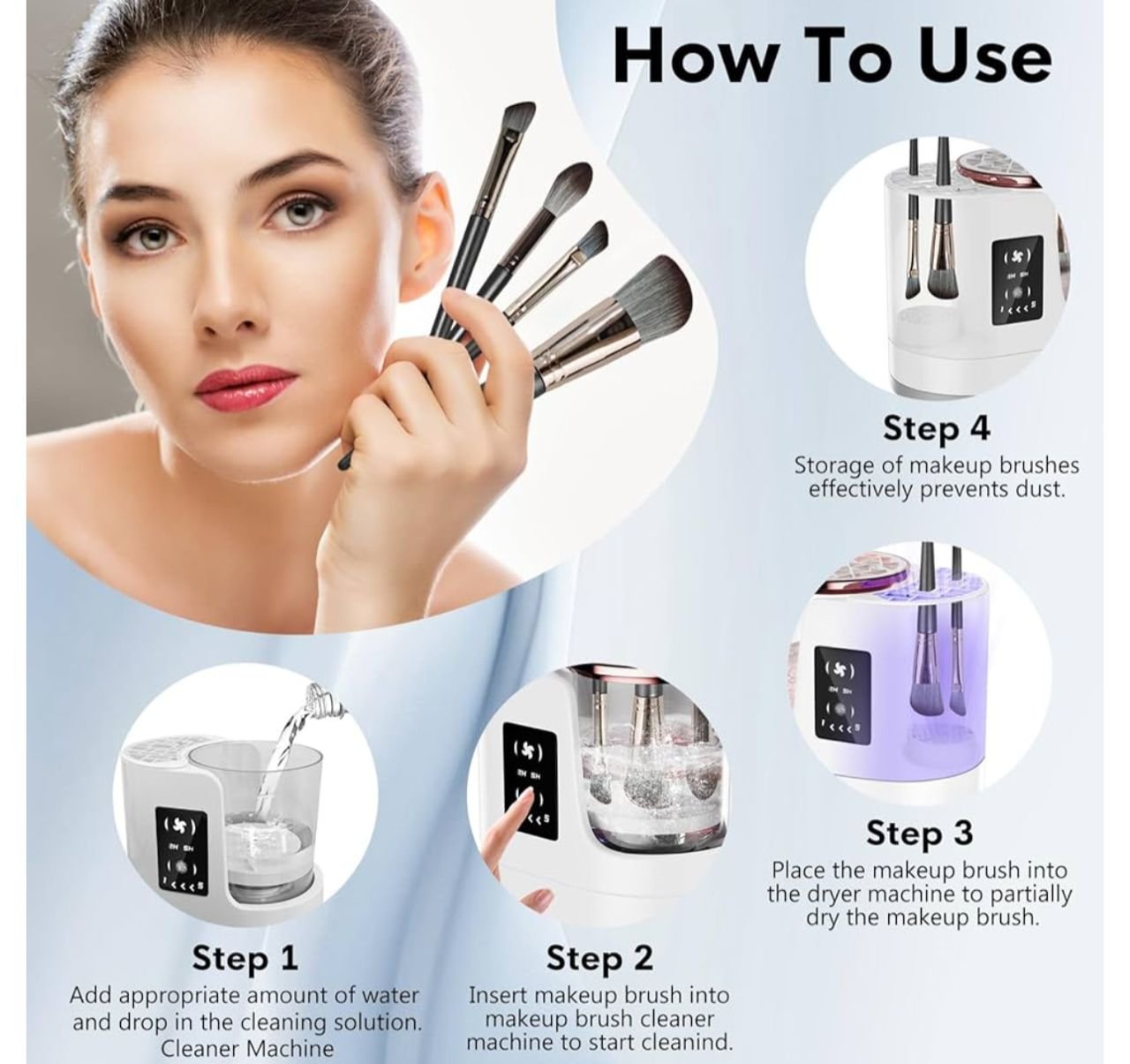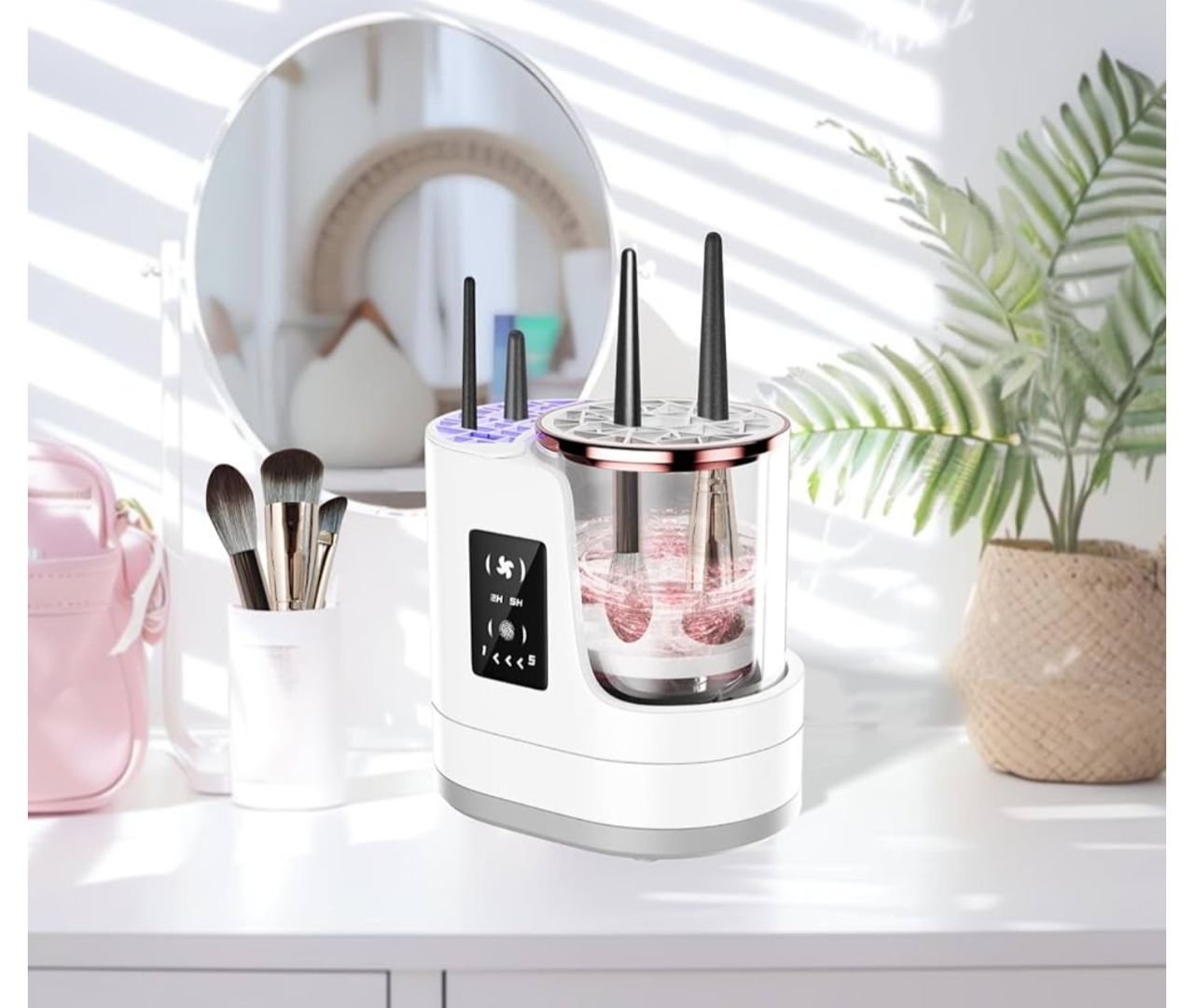 • 【Customizable Drying & Timing】The makeup brush cleaner machine includes a built-in timer offering a 5-minute cleaning cycle, while drying times can be customized (2 hours in summer, 5 hours in winter) for the best results.