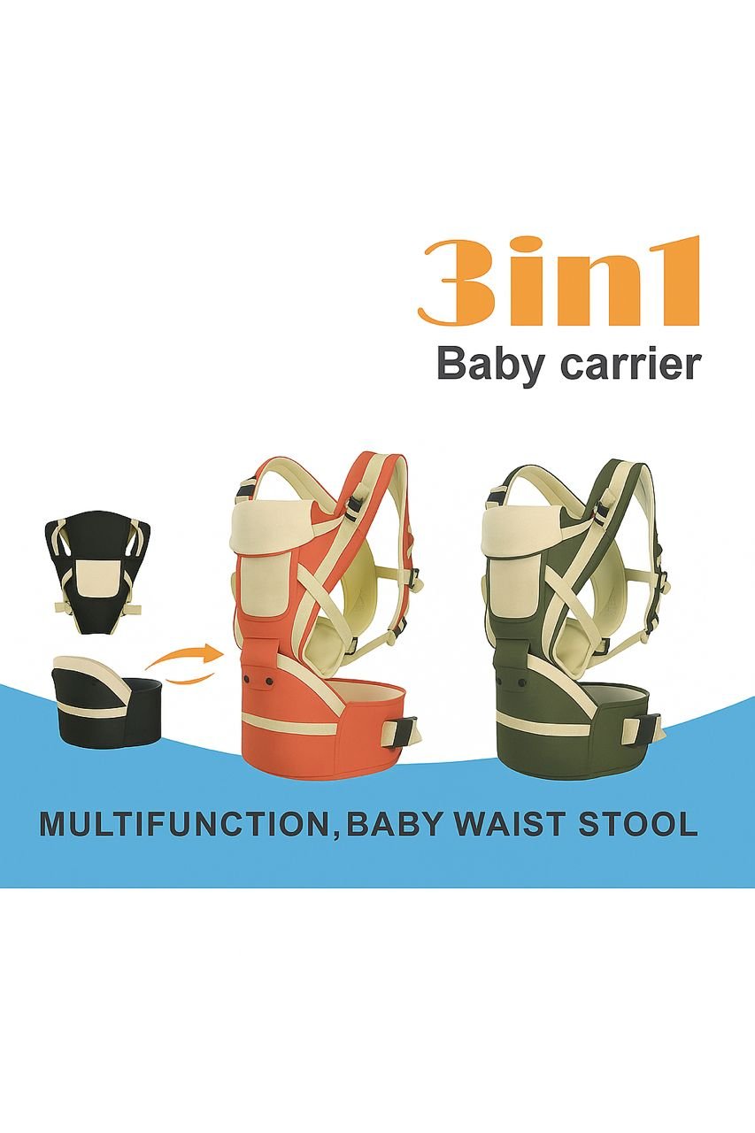 3-in-1 Baby Carrier – a multifunctional carrier with a detachable waist stool for comfortable front, back, and hip carrying. Designed for secure support and easy daily use.