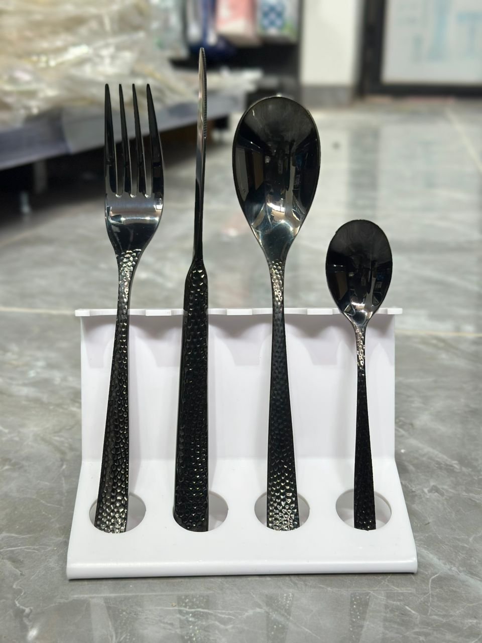 Black Hammered Stainless Steel Cutlery Set – 24Pieces