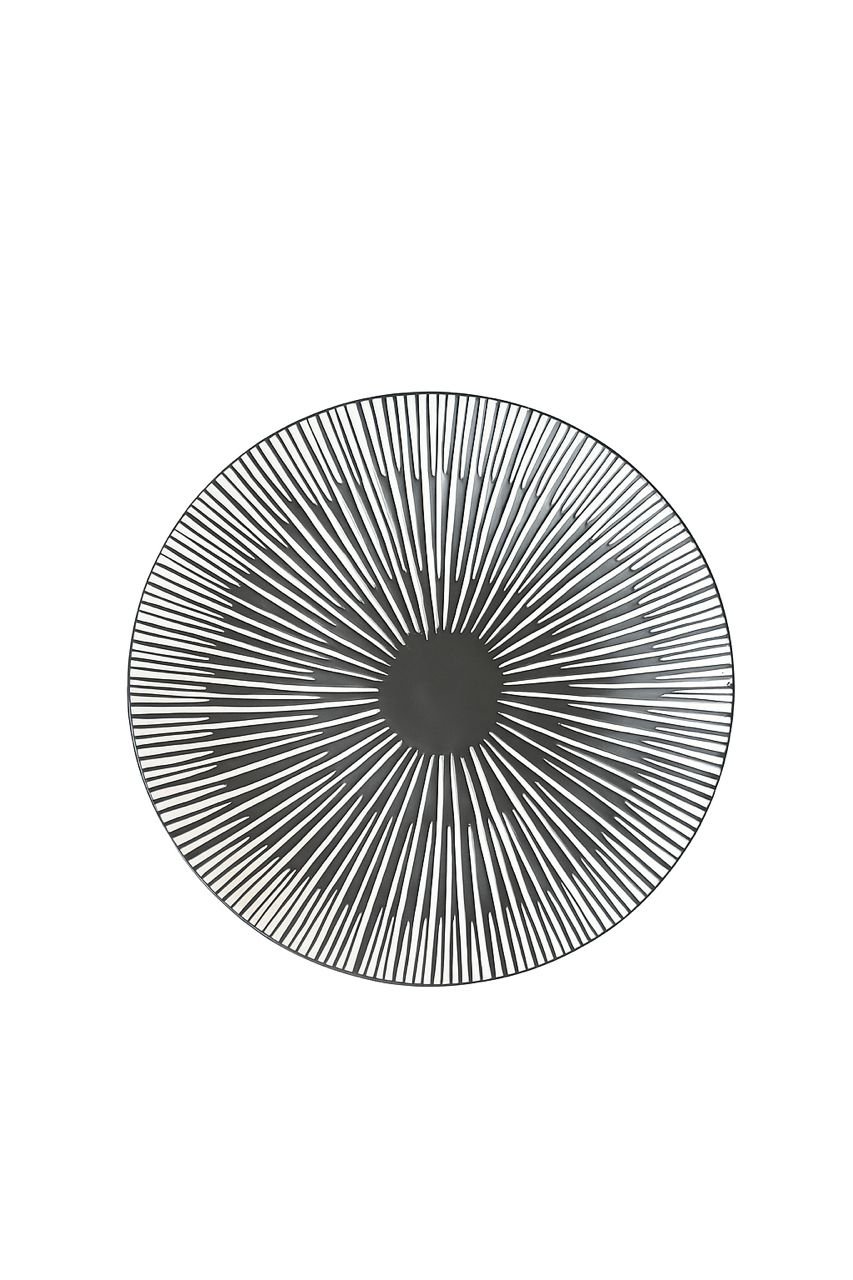 A stylish black ceramic plate with a bold white radiant-line design. Durable, modern, and perfect for everyday use. Dishwasher-safe and microwave-safe.