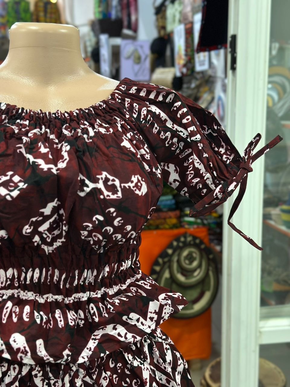 Be the first to review “Burgundy Batik Off-Shoulder Dress – Two-Piece Set”