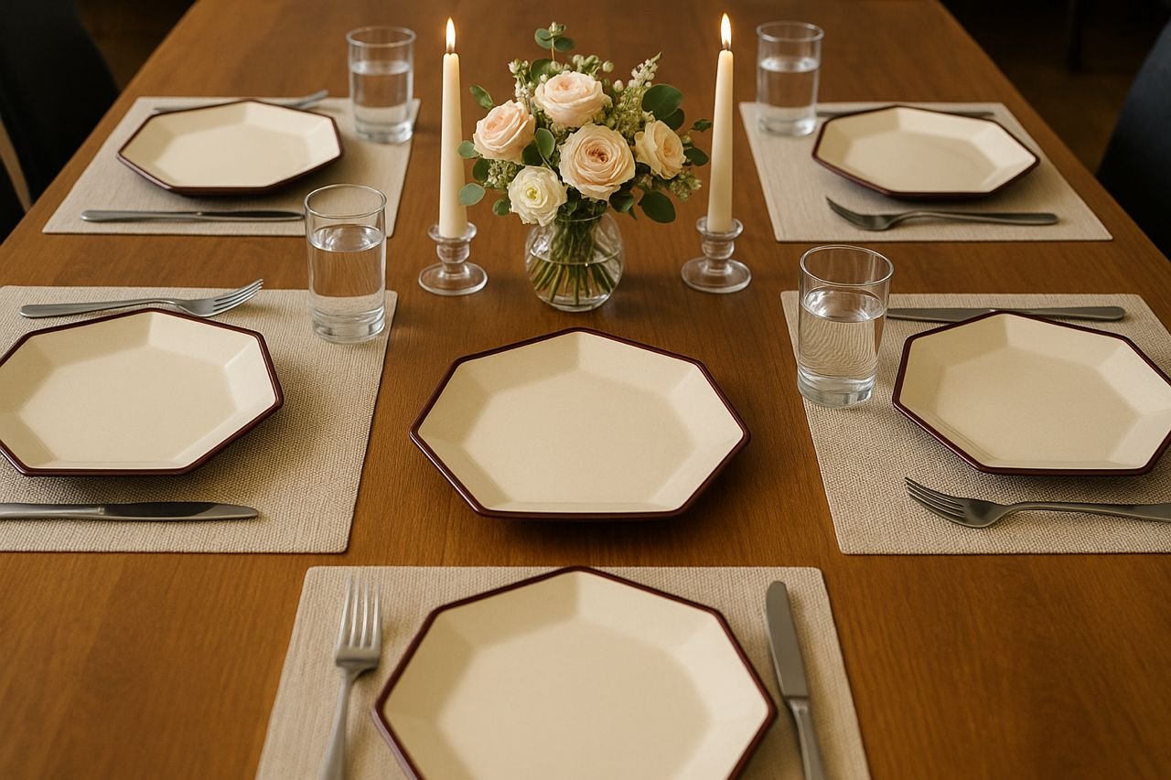 Elegant HexaEdge Dinner Plates featuring a modern hexagon shape with a refined rim and smooth center. Lightweight, durable, and unbreakable—perfect for adding a stylish touch to everyday meals.