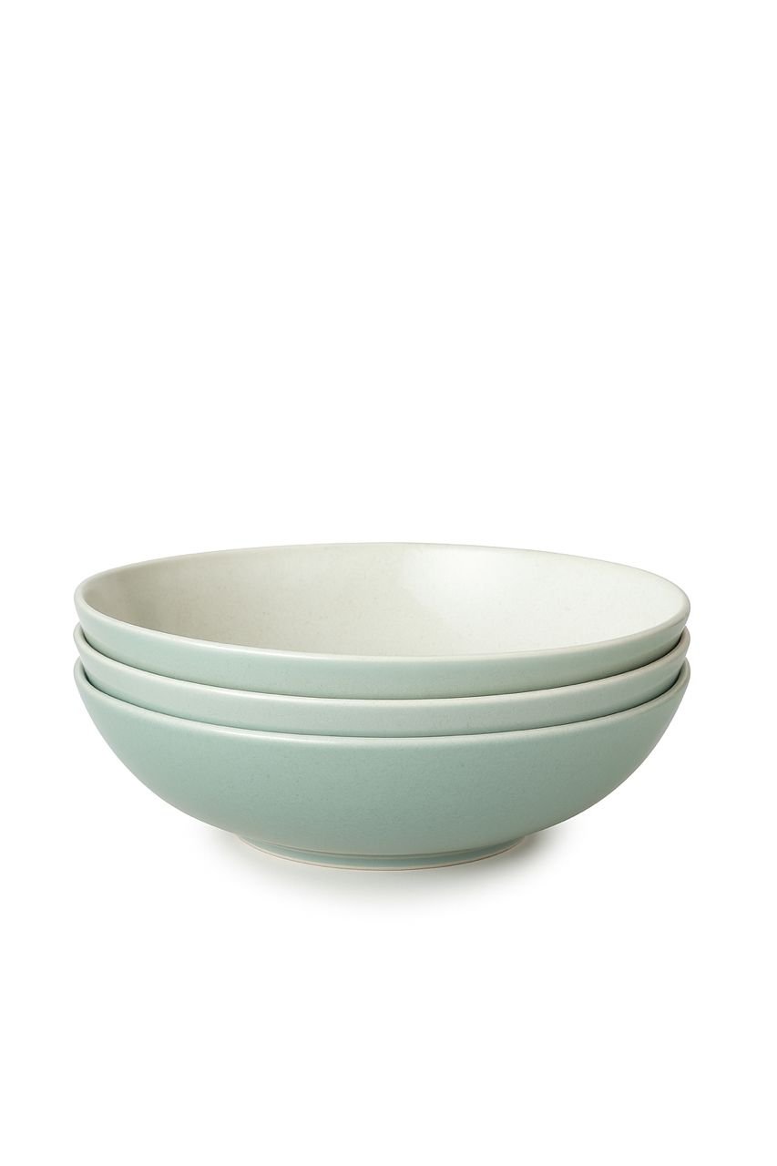 Sleek, modern, and effortlessly stylish—this set of three ceramic bowls features a smooth matte mint-green exterior and a clean ivory interior. Perfect for serving salads, pasta, soups, or everyday meals. Durable, easy to clean, and designed to elevate any table setting with a soft, minimalist touch.