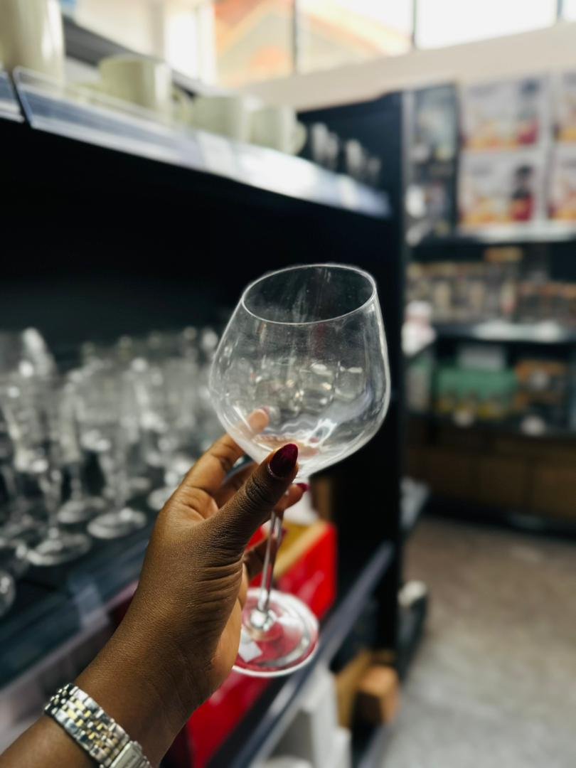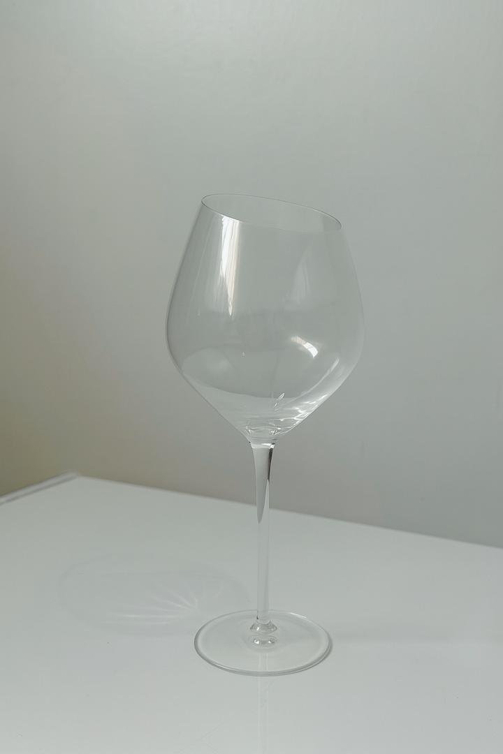 This elegant wine glass features a modern, rounded bowl with a slightly tilted rim for a stylish, contemporary look. Its long, slender stem adds a touch of sophistication, while the crystal-clear finish lets your drink shine beautifully. Lightweight, classy, and perfect for both everyday use and special occasions, this glass brings effortless charm to any table setting.