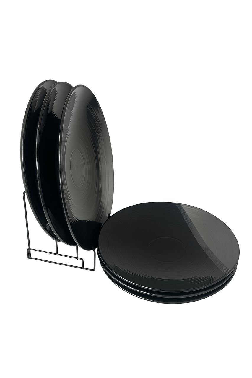 Add modern elegance to your table with this glossy black ceramic dinner plate, designed with a stunning ripple-style texture that radiates from the center. Its reflective finish creates a luxurious shine, while the smooth rounded edges offer a sophisticated, high-end look. Perfect for serving meals in style, displaying desserts, or elevating food presentations in restaurants, cafés, and home dining.