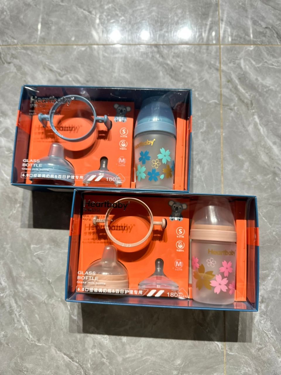 includes a frosted floral bottle, two silicone nipples (S & M), and an easy-grip handle. BPA-free, soft, and gentle for newborns to 6 months.