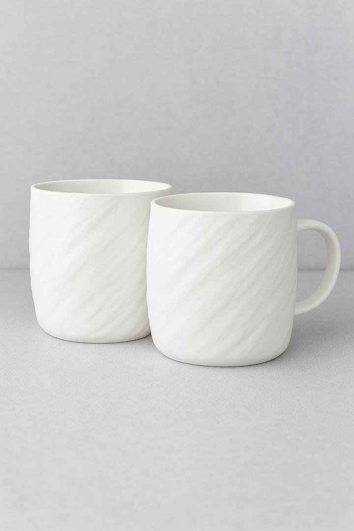 Add modern elegance to your drinkware collection with this set of two matte black ceramic mugs. Each mug features a unique diagonal textured pattern that creates a stylish, handcrafted look. The matte finish enhances its contemporary appeal while the rounded handle provides a comfortable, secure grip.
