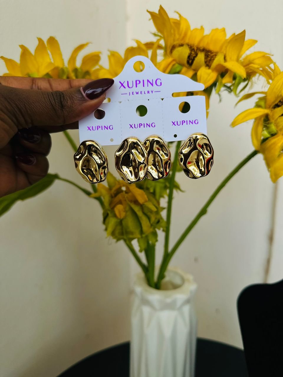 Turn heads with these bold Molten Gold Statement Studs — a striking, sculpted design that looks like liquid gold frozen in motion. Their organic, wavy shape adds instant drama and high-fashion flair to any outfit. Perfect for queens who love jewelry that speaks loudly, shines boldly, and stands out effortlessly.