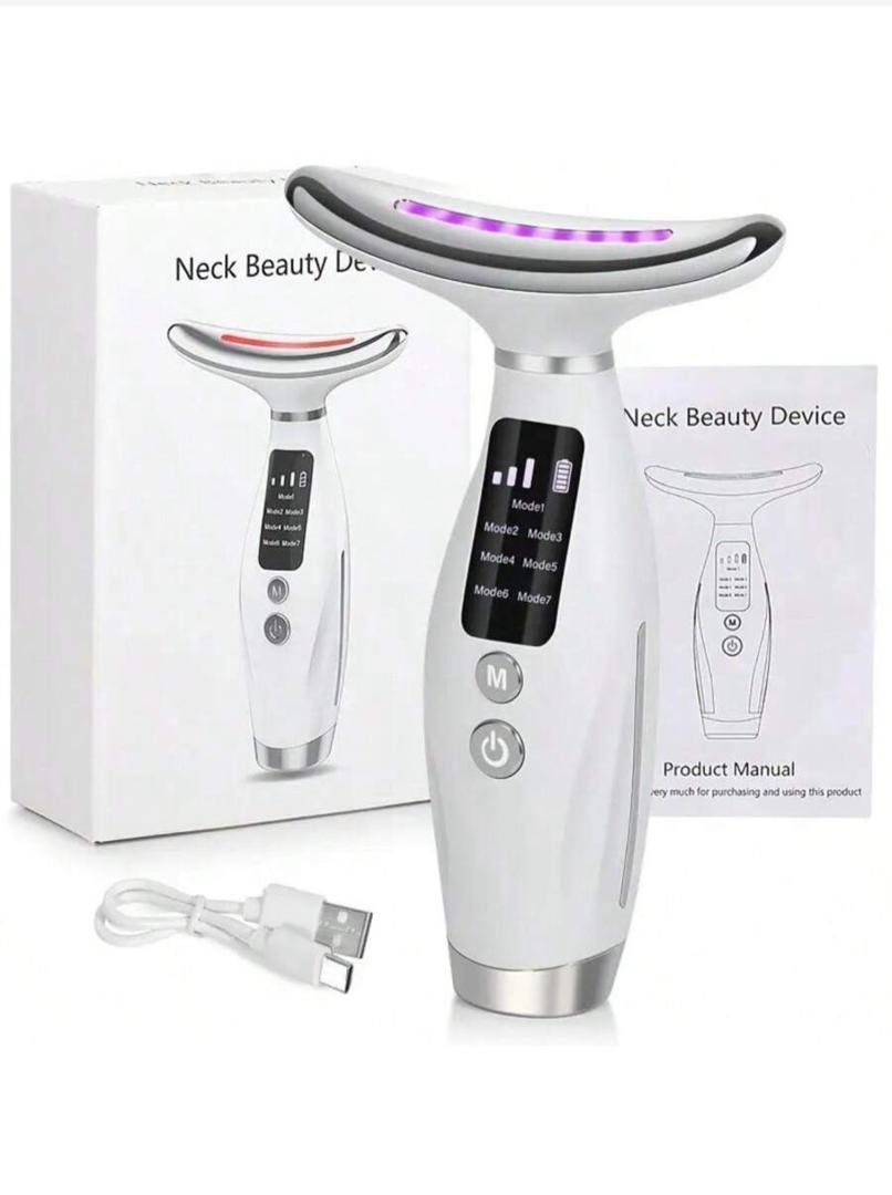 • Lift, tighten, and smooth your neck and jawline with this LED Neck Beauty Device. Designed with a curved massage head, soothing light-therapy modes, and multiple vibration settings, it helps reduce fine lines, improve elasticity, and boost product absorption. Portable, rechargeable, and perfect for daily skincare routines.