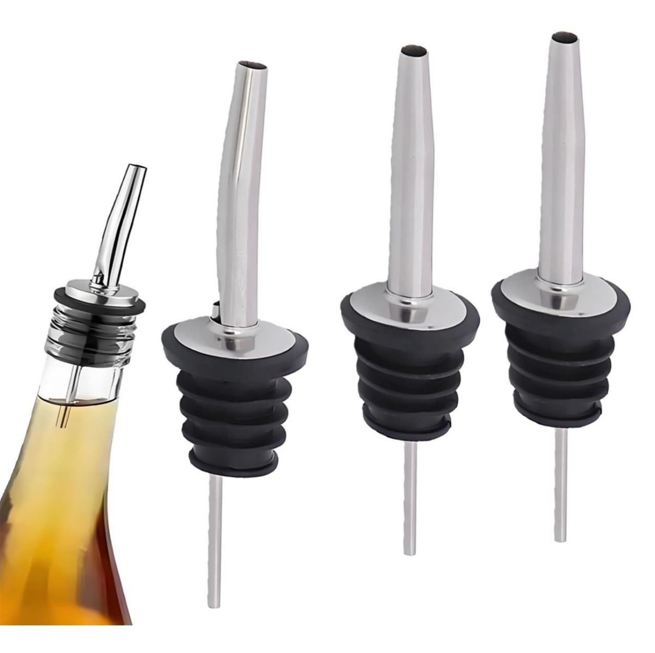 • Stainless Steel Liquor Pourers with Rubber Dust Caps – Tapered Spout Liquor Bottle Pourers for Alcohol – Pour Spout For Liquor Bottles, Olive Oil Dispensers, Syrup, Vinegar, Juice
