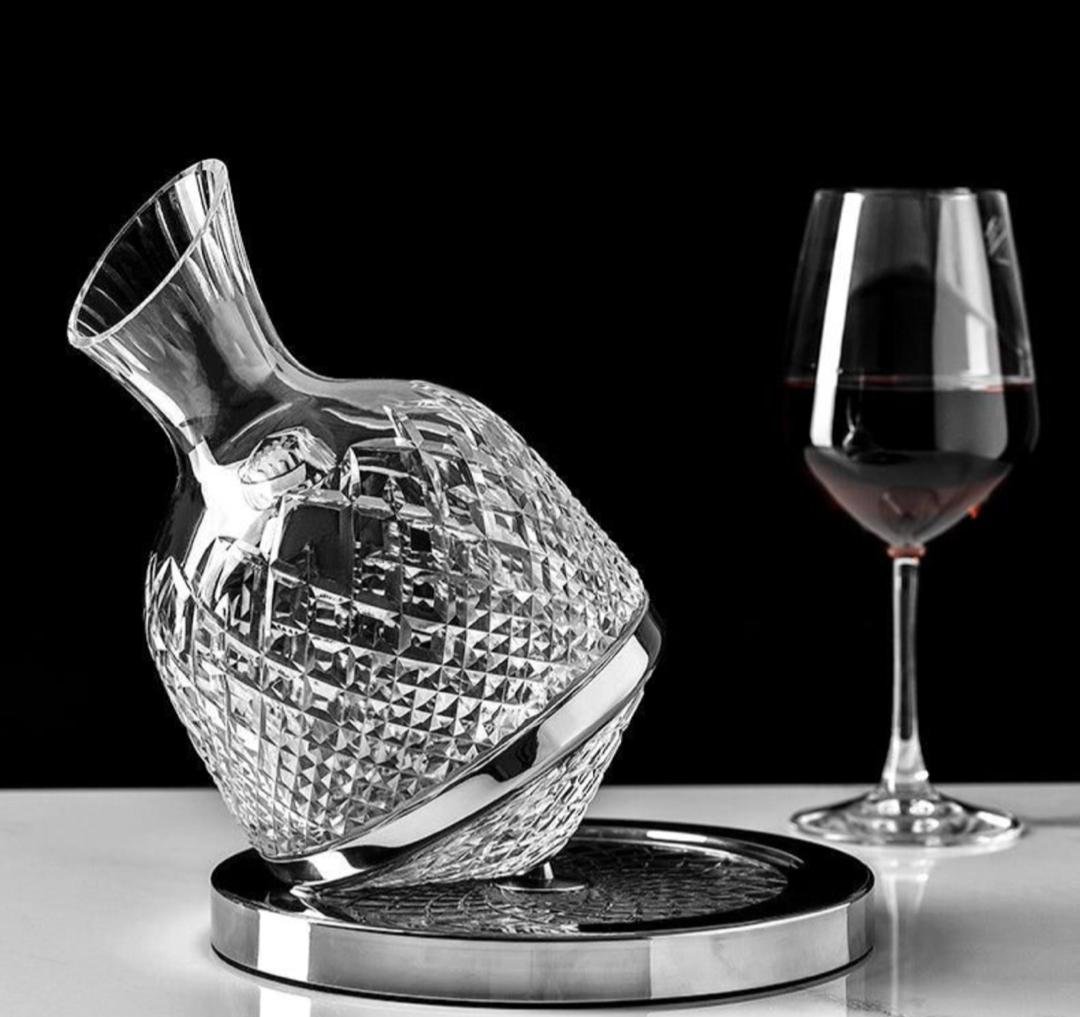Luxury Glass Decanter with Silver Base – beautifully crafted with a textured diamond pattern and an angled design for smooth, controlled pouring.