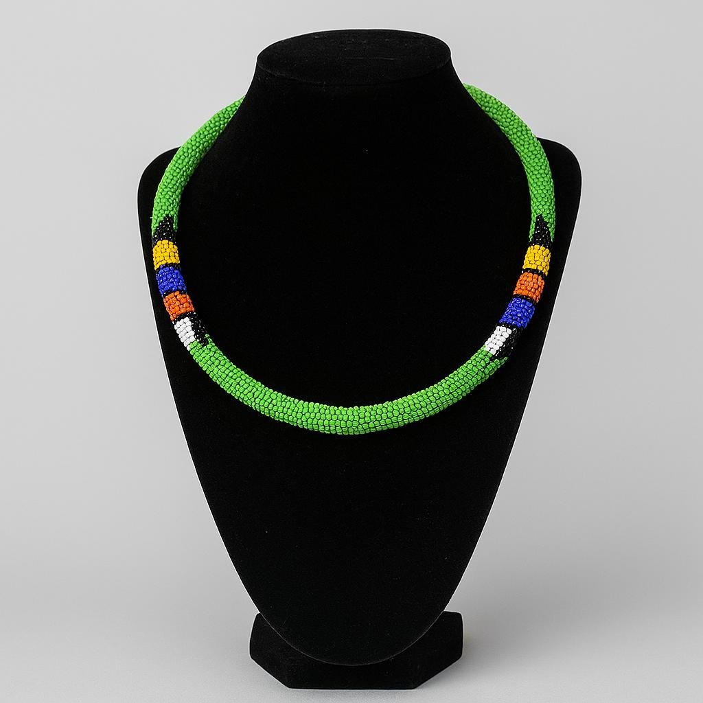 Handcrafted with tiny colorful beads, this bold green choker adds a touch of cultural flair and everyday elegance to your style