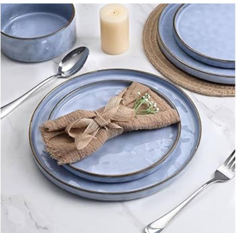 Stoneware Plates and Bowls, Kitchen Dinner Set for Dessert Salad Pasta, Microwave & Dishwasher Safe, Serenity Blue